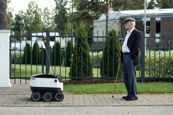 Rollboter: Ein intelligentes Fahrzeug von Starship Technologies liefert Waren aus.
