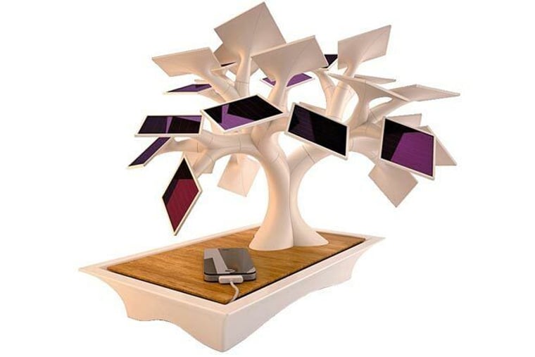 Kunstwerk, Ladestation, Ökostatement – der Electree des französischen Designers Vivien Muller ist alles in einem. 27 Solarmodule speisen Strom in einen Akku, der für mehrere iPhone-Ladungen reicht. Preis: 299 Euro.