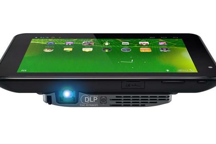 Ein kompaktes 7-Zoll-Android-Tablet mit eingebautem Projektor. Das auf der IFA vorgestellte Gerät ist für Präsentationen beim Kunden oder auch nur für das gemeinsame Betrachten von Urlaubsvideos gedacht. Der DLP-Beamer ist abnehmbar und liefert laut Hersteller eine Bilddiagonale von maximal 3 Metern.