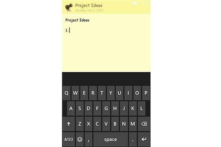 Notiz-App. Die einzelnen Notizen im Kacheldesign lasen sich wie ein "Post It" an der Startoberfläche von Windows Phone anbringen.
