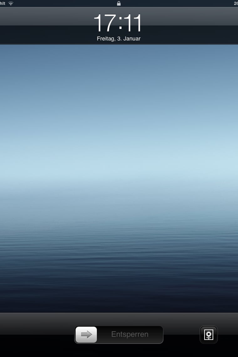 Damit sich der Bildschirm nicht dreht, wenn Sie das iPad drehen, können Sie zweimal kurz hintereinander auf die Home-Taste drücken. Es öffnet sich die Multitasking-Leiste, in der zunächst alle geöffneten App angezeigt werden. Streichen sie nach rechts und Sie kommen in den Bereich, in dem auch die Musik gesteuert wird. Direkt daneben finden Sie einen Kreis-Pfeil. Durch Tippen können Sie die Ausrichtungssperre aktivieren und deaktivieren. Rechts neben dem Sperrsymbol können Sie auch die Helligkeit des Displays regeln.