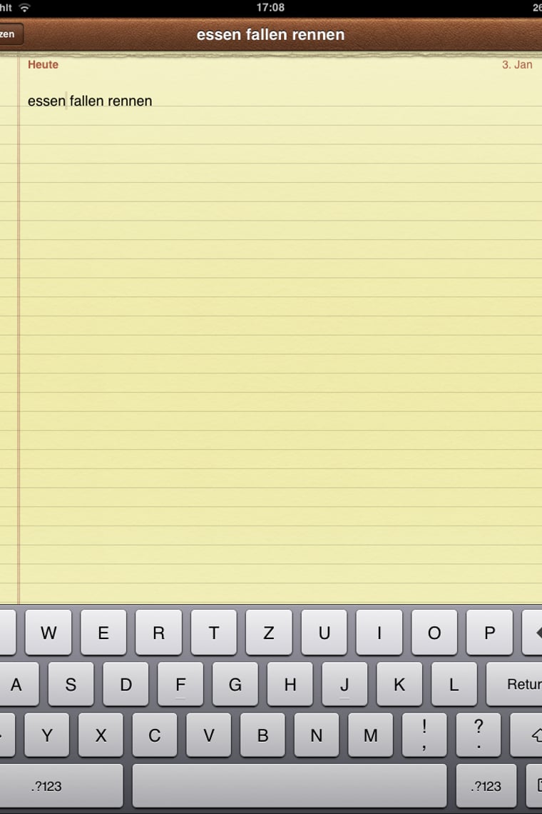 Wenn Sie schmale Finger haben, können Sie sogar zwei Zeichen mit einem Tipp auf die Tastatur auslösen. Tippen Sie dagegen mit zwei Fingern auf einen Buchstaben, schreiben Sie diesen doppelt: Praktisch für Wörter wie essen, fallen oder rennen. Mit zwei Fingern auf die Leertaste drücken, oder diese zweimal kurz hintereinander antippen: Sie schreiben einen Punkt und ein Leerzeichen.