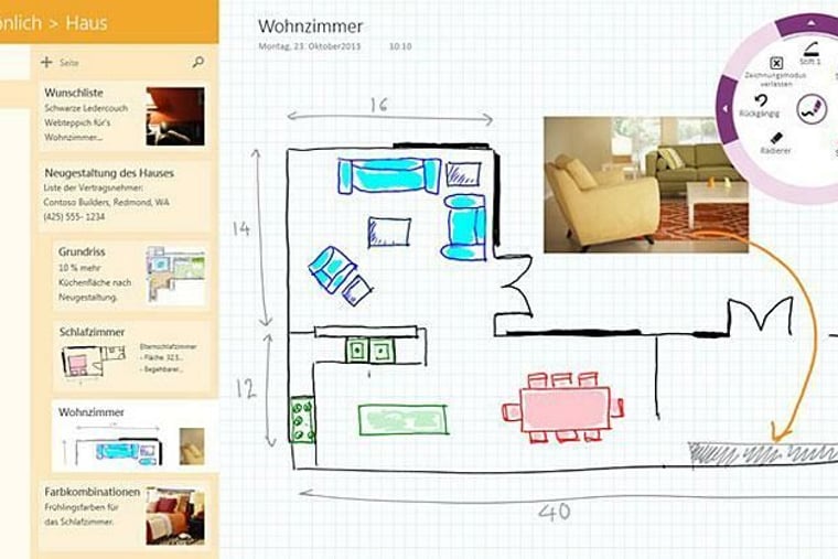 Digitales Notizbuch für Windows 8 zum Zeichnen und Schreiben. Man kann auch eingescannte Dokumente integrieren, Listen erstellen und Fotos in die Notizen einfügen.