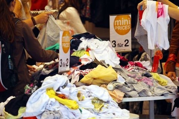 20 Jahre lang stieg der Absatz von Kleidung kontinuierlich. 1991 legten sich die Amerikaner jährlich im Schnitt 34 neue Kleidungsstücke zu – unter anderem Hosen, Kleider, Pullover, T-Shirts, Unterwäsche. 1996 stieg diese Zahl auf 41. 2006 wiederum war der Pro-Kopf-Verbrauch auf 67 Teile geklettert. Das heißt, dass amerikanische Verbraucher alle 5,4 Tage ein neues Kleidungsstück kaufen.