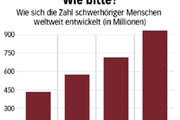 Wie sich die Zahl schwerhöriger Menschen weltweit entwickelt (in Millionen, klicken Sie auf die Grafik für eine erweiterte Ansicht)