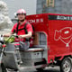 Der Robo-Bote manövriert routiniert durch Pekings dichten Straßenverkehr. Von Autos, die ihn links und rechts überholen, hält der etwa ein Meter lange und bis zu den Schultern reichende Kastenwagen auf seinen vier Gummirädern genügend Abstand. Und auch Fußgängern, die den autonomen Lieferwagen auf die Probe stellen wollen und direkt vor ihm auf die Straße treten, weicht das rotlackierte Gefährt mit vier Gepäckfächern auf jeder Seite gekonnt aus.