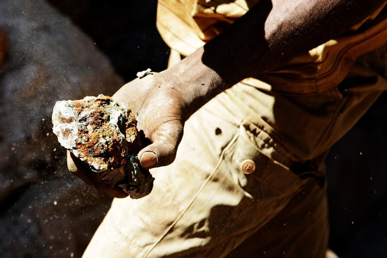Ein Bergarbeiter trägt Roherz in Tilwizembe, einer ehemaligen industriellen Kupfer-Kobalt-Mine, außerhalb von Kolwezi, der Hauptstadt der Provinz Lualaba im Süden der Demokratischen Republik Kongo