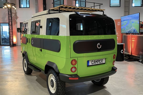Eine Weltpremiere ist die Camper-Variante des modularen Xbus, dessen Basismodell Electric Brands bereits im Herbst letzten Jahres vorstellte. Mit ausziehbarer Kabine, die zwei Schlafplätze birgt, modernem Innenleben und zweisitziger Fahrerkabine kommt der Xbus Camper als elektrische, nachhaltige Version für Outdoorliebhaber auf der gleichen Technikbasis aller Xbusse: Als Antrieb kommt ein elektronisch gesteuerter Allradantrieb zum Einsatz, der zusammen mit der grobstolligen Bereifung das Fortkommen auch auf morastigen Campingplätzen sichern soll. Ohne Batterien, Personen und Ladung kommt das Gefährt je nach Ausstattung auf ein Leergewicht von 500 bis 800 Kilogramm.