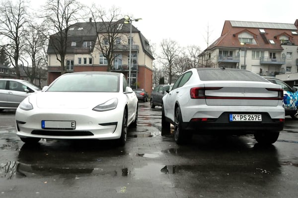 Große Unterschiede: Der Polestar (rechts) verbrauchte im Schnitt rund 45 Prozent mehr als das Tesla Model 3 Allrad (links)
