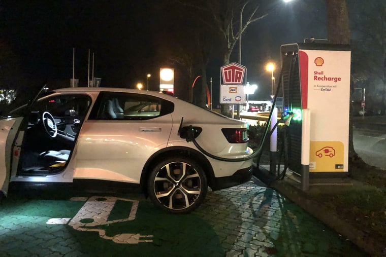Auch das Kaltladen haben wir ausführlich getestet. Im Schnelladepark am Autobahnkreuz Hilden gibt es neben 20 Tesla-Superchargern vier schnelle Gleichstromlader des niederländischen Anbieters Fastned. Da wir morgens mit einem kaltem, nahezu leeren Akku ankommen, brauchen wir für rund 100 Kilometer Reichweite (29 kWh) im Polestar gut 40 Minuten. Gut, dass es am Ladepark ein nettes Café gibt, in dem wir uns die Zeit vertreiben können. Der Tesla beginnt zu Hause sofort nach Eingabe des Ziels „Supercharger Hilden“ mit dem „Vorkonditionieren“, der Batterie, wie er uns im Mitteldisplay mitteilt. Das Bordsystem hat erkannt, dass wir gleich Schnellladen wollen und heizt den Akku während der Anfahrt.