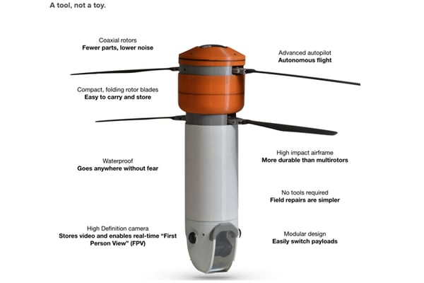 Sieht aus wie eine Thermoskanne – doch ausgeklappt wird aus ihr eine Drohne: Spike ist eine fliegende Kamera für alle, die wenig Platz im Gepäck haben. Noch im Mai startet der Hersteller Ascent Aerosystems eine Kickstarter-Kampagne.