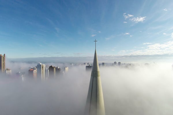Das Drohnen-Bild des Fotografen Ricardo Matiello seiner brasilianischen Heimatstadt Marínga hat gleich doppelt abgeräumt. Es landete in zwei Kategorien auf dem ersten Platz. Es war eine Herausforderung für den Fotografen, die Drohne bei Nebel zu fliegen. Er sagt selbst, dass er völlig fasziniert davon war, wie die Stadt an diesem seltenen Nebeltag von oben aussah.