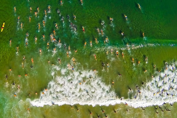 Jedes Jahr im Juni stürzen sich hunderte Schwimmer in die Fluten des Pazifik. Das La Jolla Pier to Cove Ocean Race in der Nähe von San Diego in Kalifornien geht über anderthalb Meilen. Der Fotograf Kdilliard hat den Massenstart mit seiner Drone von oben beobachtet und aufgenommen.