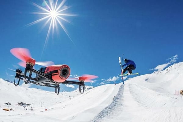 Der französische Hersteller Parrot bietet mit dem Quadrokopter Bebop eine Drohne für Einsteiger. Der große Vorteil: Sie lässt sich leicht transportieren, denn sie wiegt nur 390 Gramm und lässt sich leicht in einer mittelgroßen Tasche verstauen. Allerdings ist die Drohne im Vergleich zu teureren Modellen anfälliger für Wind, so dass Videos mitunter wackelig wirken.