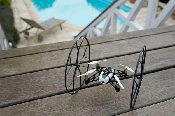 Ebenfalls von Parrot stammt die kuriose Spielzeug-Drohne Rolling Spider: Halb Modellflieger, halb ferngesteuertes Auto, lässt sie sich abwechselnd fahren und fliegen. Auf Knopfdruck schlägt sie Salti und vollführt andere Kunststücke.