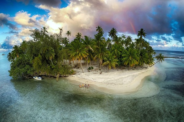 Und noch ein Bild aus Französisch-Polynesien gehört zu den Gewinnern. Hier sieht man die Fotografen von Marama Photo selbst dabei, wie sie auf der Insel Tahaa im Wasser sitzend auf den Sonnenuntergang warten.