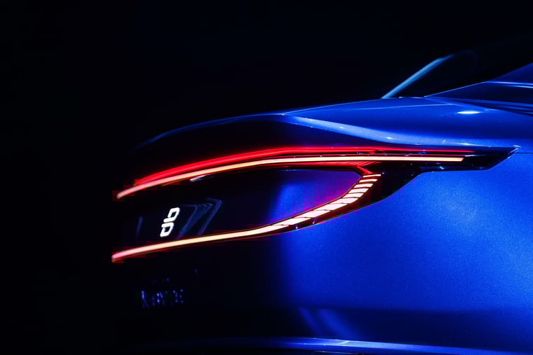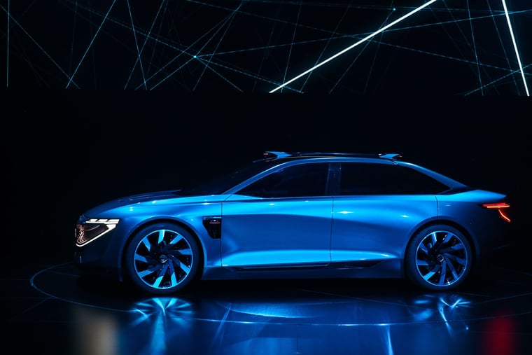 Bei näherem Hinsehen stechen dann die futuristischen Details hervor. Anstelle der Außenspiegel sind Kameras installiert. Türöffner fehlen völlig. Stattdessen soll das Auto seinen Eigentümer per Kamera und Gesichtserkennungssoftware identifizieren. Zwischen den LED-Scheinwerfern ist ein Lichtstreifen installiert, mit dem Fußgängern etwa signalisiert werden kann: Achtung, hier kommt ein Auto. Denn Lärm macht das vollständig elektrisch betriebene Auto keinen.