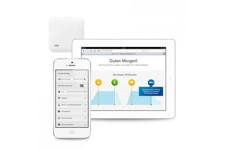Das Münchener Start-up tado bietet eine lernende Steuerung für die Zentralheizung, die Wetterdaten und Abwesenheitszeiten auswertet. Es lässt sich an fast alle bestehenden Heizungsanlagen anschließen. Nur in Wohnungen ohne eigene Heizungsanlage funktioniert es nicht.