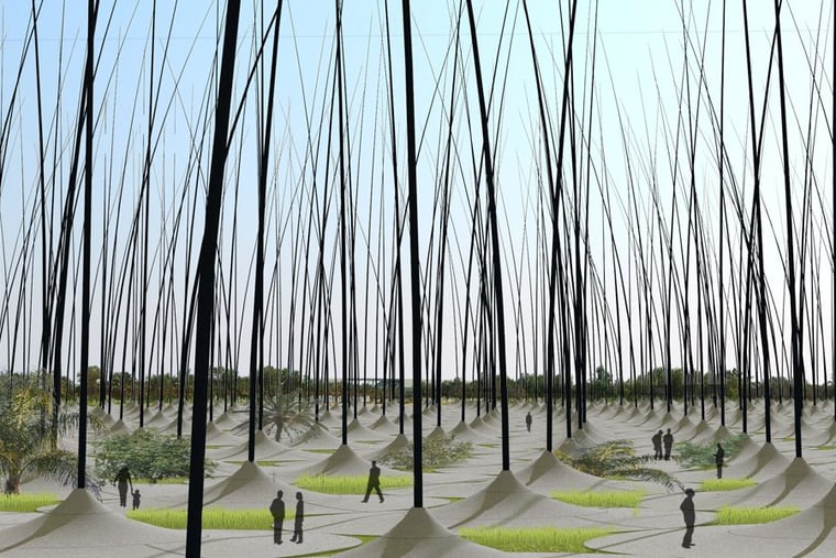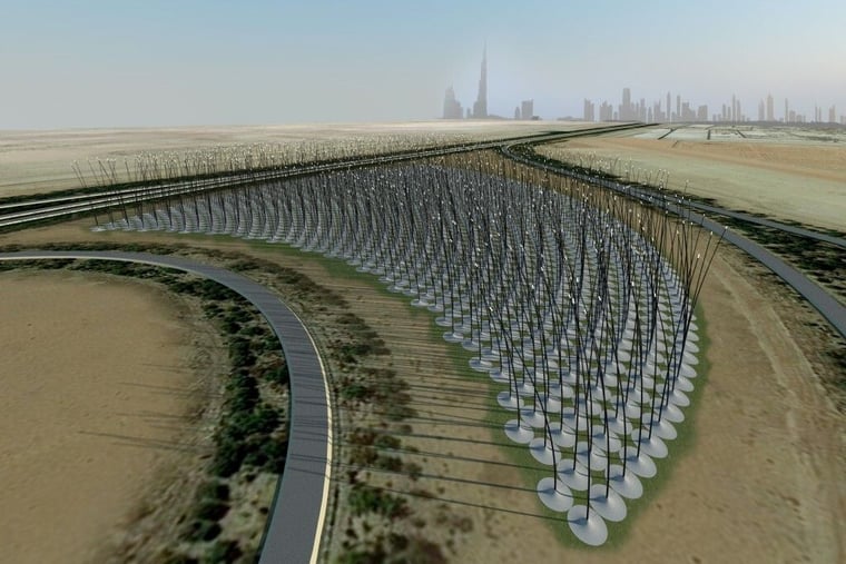 Nach einem Entwurf des New Yorker Ateliers DNA hat die gesamte Anlage 1203 Stäbe. Der Besucher soll beim Begehen das Windrauschen hören können. Der Carbon-Wald soll soviel Energie liefern wie ein konventioneller Windpark derselben Größe.