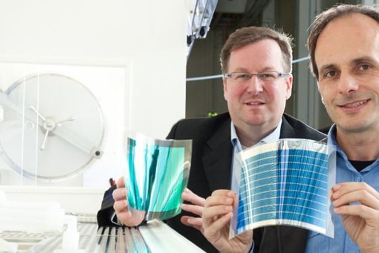 Solarzellen aus Plastik - Heliatek-Gründer Martin Pfeiffer und CEO Thibaud Le Séguillon