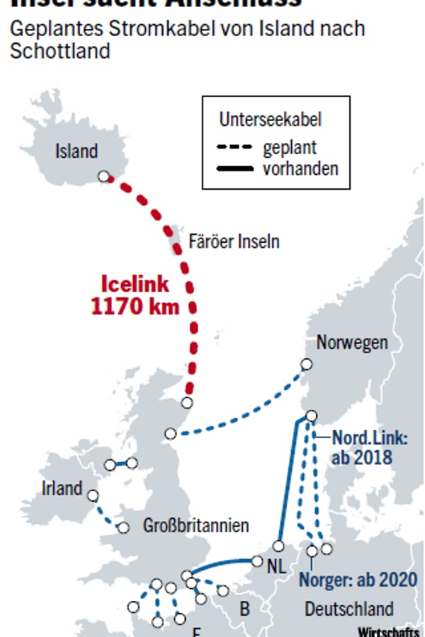 Bald soll auch Mitteleuropa vom Energiereichtum im Norden profitieren. Denn die Isländer wollen ihr Inseldasein auf dem Energiesektor beenden: Ein 1170 Kilometer langes Kabel soll ihre Heimat mit dem Elektrizitätsnetz Großbritanniens verbinden. Icelink, so sein Name, wäre das längste Unterseestromkabel der Welt.