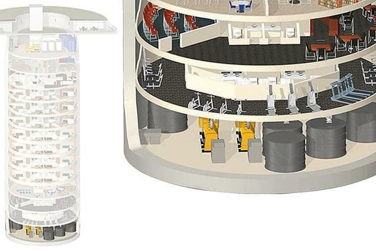 Das Essen in der Riesenhöhle soll mindestens ein Jahr reichen, es wird massenweise Dosennahrung geben. In riesigen Gewächshäusern mit künstlicher Sonne wächst Gemüse. „Jeder Bewohner kann täglich einen großen Salat haben, wenn er will“, verspricht Vicino. Es soll mehrere Bars, einen Weinkeller und sogar eine Bäckerei geben, genug Mehl will er einlagern. „Für jeden sind pro Tag 2500 Kalorien eingeplant.“ Die Tanks der Generatoren fassen mehr als eine Million Liter Diesel. Vicino plant einen Golfplatz, eine Kirche, eine Bibliothek, ein Fitnessstudio und ein Kino. In einem Teil des Bunkers soll ein kleines Krankenhaus mit Minioperationssaal entstehen. „Wir stellen die Ausrüstung zur Verfügung, den Betrieb müssen dann unsere Kunden übernehmen“, sagt er. „Wir haben Interessenten aus allen Berufsgruppen, dort werden Chirurgen, Krankenschwestern, Zahnärzte, Polizisten und Friseure leben. Alle Dienstleistungen bieten sie einander kostenlos an. Es wird eine komplette Gesellschaft unter der Erde.“ Von Privatbunkern in Stahlröhren, wie Ron Hubbard sie anbietet, hält er nicht viel: „Die werden zum Grab.“