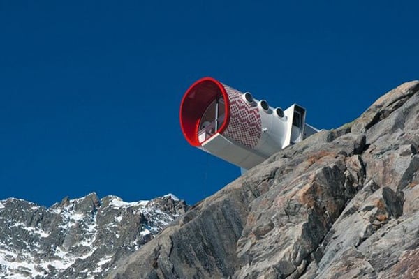Viele Bergfans wollen am liebsten im Einklang mit der Natur wandern. Wenn es aber im Hochgebirge abends kalt wird, benötigen sie nicht nur Schutz, sondern sie verbrauchen oft auch Kerosin, Gas oder Batterien für ihre Kocher. Eine überlebenssichernde und umweltfreundliche Übernachtungsmöglichkeit bietet jetzt die italienische Designfirma Leap-Factory. Ihre röhrenartige, schnee- und sturmsichere Mini-Lodge ist im Schnitt 3,5 Meter breit, acht Meter lang und 2,80 Meter hoch. In ihr sind Tische, Stühle, Toiletten und Waschbecken installiert. Nach Bedarf gibt es Kojenplatz für zwei bis zwölf Personen. Dafür dass es bei traumhafter Aussicht auf Himmel und Berge warm bleibt, sorgt die Fotovoltaikanlage auf dem Dach. Das Handicap: Mindestens 200 000 Euro kostet die 2500 Kilogramm schwere und mehrmodulige Schlafkapsel. Damit sich der Aufwand rechnet, bleibt das Biwak mehrere Wochen auf dem Berg und kann von verschiedenen Wanderern benutzt werden.