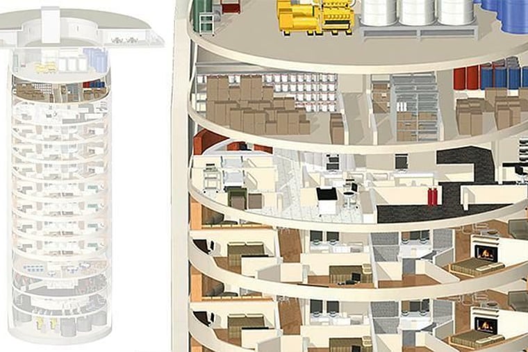 Geschützt durch knapp drei Meter speziell gehärteten Beton und bis zu 53 Meter tief in der Erde verborgen, hat Hall sein Luxury Survival Condo gebaut, eine Luxusüberlebenswohnanlage. Die soll, wie der Bauherr verspricht, selbst den direkten Einschlag einer Atomrakete überstehen. Im Fall der Fälle können dort, ein wohlgefülltes Bankkonto vorausgesetzt, bis zu 70 Bewohner in den jeweils 1,5 bis 3 Millionen Dollar teuren Apartments Platz finden.