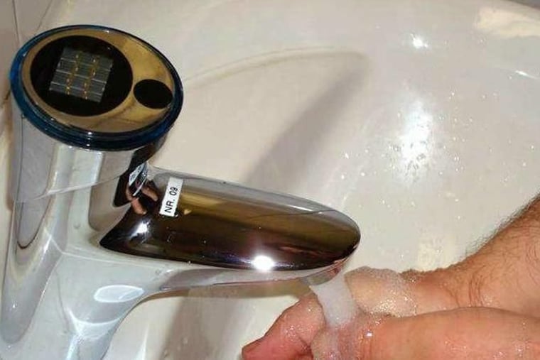 Ingenieure des Karlsruher Instituts für Technologie haben mit Industriepartnern den Prototypen eines berührungsfreien Wasserhahns namens PowerFluid entwickelt, der mit Wasserkraft funktioniert: Eine winzige Wasserturbine und ein Generator speisen Strom in einen Speicher, der den Näherungssensor versorgt.