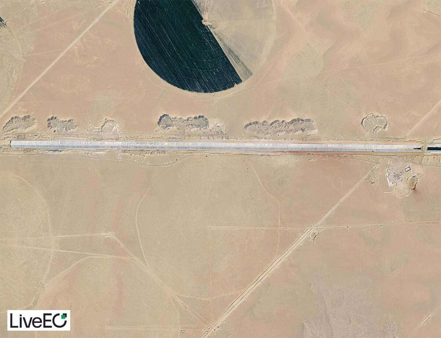 Das Projektgelände erstreckt sich unweit der nordwestlichen Küste über 10.000 Quadratkilometer. Auf Satellitenbildern lässt sich erkennen, wie in der Region in den letzten fünf Jahren jede Menge neue Felder angelegt wurden. Aus dem All betrachtet sehen die Anbauflächen aus wie grüne Punkte. Erst bei genauerem Hinsehen erkennt man ihre wahre Dimension: Die kreisrunden Felder haben einen Durchmesser von über 600 Metern.