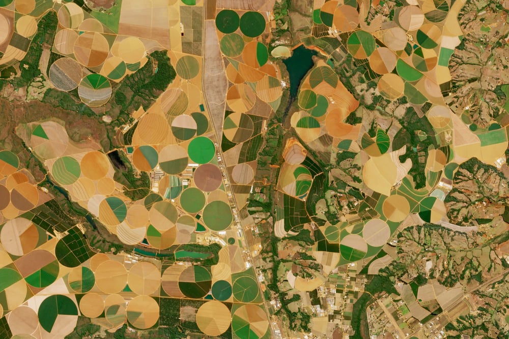 Aus dem All betrachtet, sieht es aus, als hätten Riesen mit Zirkeln im XXL-Format gespielt. Hunderte präzise gezogene Kreise kennzeichnen die Landschaft rund um São Gotardo, im südbrasilianischen Bundesstaat Minas Gerais. Außerirdischer Besuch? Prähistorische Kultstätte? Gigantische Machtsymbole einer untergegangenen Zivilisation? Nichts davon. Es sind nur die Spuren automatischer Gießanlagen, die hier im Herzen der Agrarregion des Landes ihre Arbeit verrichten. Sie verteilen 24 Stunden am Tag Wasser und Dünger auf die Felder – in genau abgezirkelten Mengen.