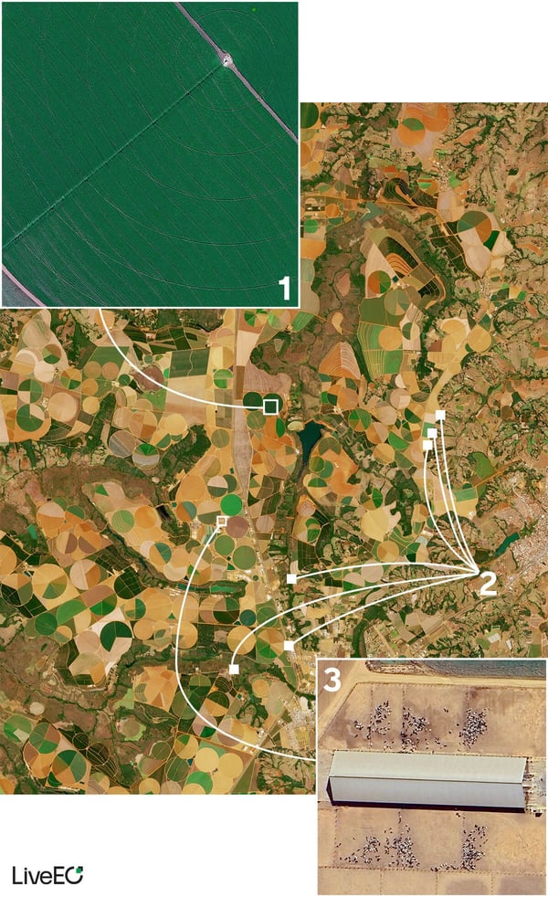 3. Eine Rinderfarm, wie es hier zwischen den kreisrunden Feldern viele gibt