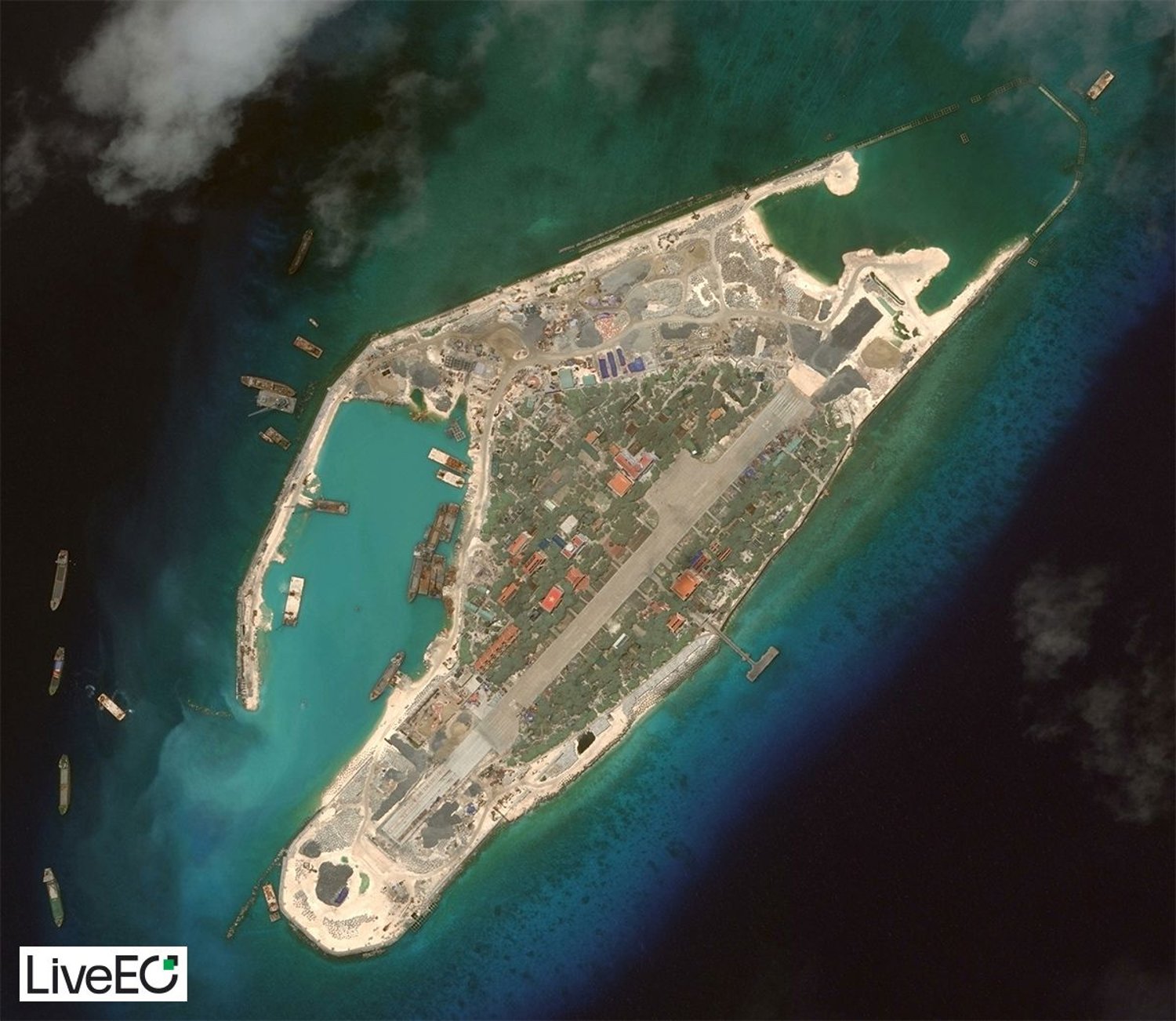Die Inseln, die China kontrolliert, haben eine erstaunliche Transformation durchgemacht. Vor zehn Jahren noch unbewohnt findet sich auf dem Subi-Riff nun eine gewaltige Militärbasis. Auf neuen Satellitenaufnahmen ist ein Großteil der Fläche bebaut. Es gibt Hangars und einen Leuchtturm. Auch sind mehrere Radar-Türme und Verteidigungsanlagen zu sehen. Sogar ein Sportstadion wurde errichtet.