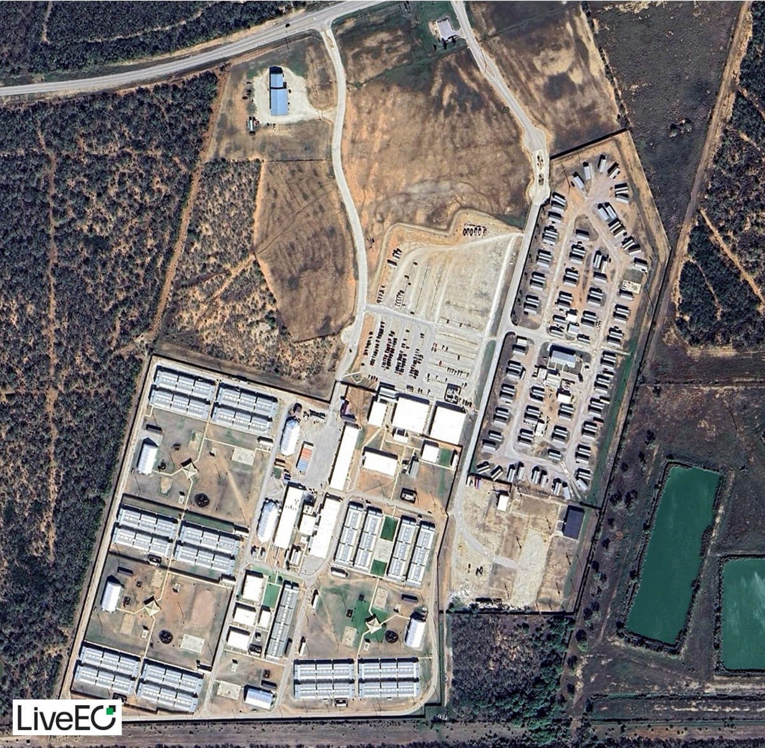 Bis zu 2.400 Inhaftierte sollen dort unterkommen. Allerdings fehlt es etwa an sauberem Wasser, berichtet die „LA Times“. Bis 2030 soll Target Hospitality dort modulare Wellblechunterkünfte für rund 250 Millionen Dollar aufstellen. Auf Satellitenbildern ist auch ein neues Zelt zur Kapazitätserweiterung zu erkennen.