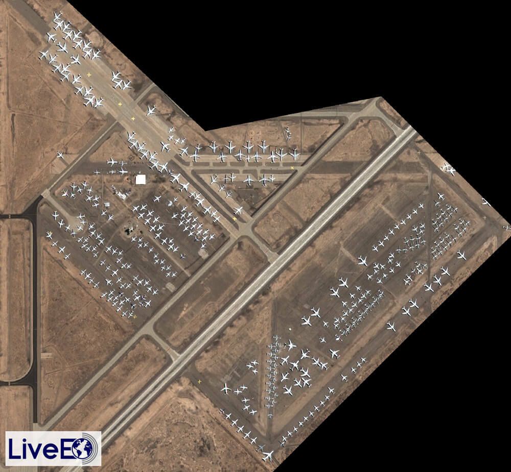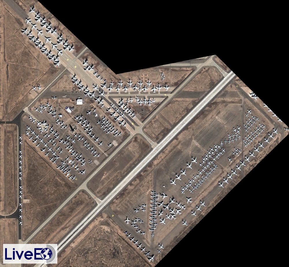 Doch ein genauer Blick auf die Flugzeugparkplätze weltweit zeigt: Der Aufschwung ist extrem ungleich verteilt. Exklusive Satellitenbilder von LiveEO belegen, dass vielerorts die Zahl der ruhenden Jets zurückgeht (siehe auch Tabelle „Friedhof statt Parkplatz“). Das gilt vor allem auf den weltgrößten Abstell-Airports im wüstenartigen Südwesten der USA wie Marana. Andere Aufnahmen wiederum zeigen, dass an Flugzeugfriedhöfen wie Alice Springs in der australischen Wüste sogar mehr Gerät steht als noch zum vorläufigen Höhepunkt der Krise im Dezember.