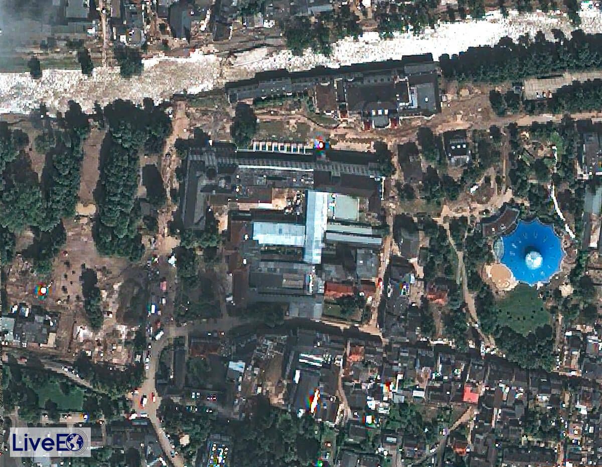 Besonders betroffen ist das Werk des Kupfer-Recyclers Aurubis im nordrhein-westfälischen Stolberg. Das Werk wurde vergangene Woche überflutet, die Zufahrtsstraße unterspült. Die Auswirkungen sind zum Teil auch auf den Satellitenbilder von LiveEO zu sehen. Das Unternehmen erklärte „Force Majeure“, also höhere Gewalt. Eine Belieferung von Kunden und eine Abnahme von Zulieferungen seien aktuell unmöglich, heißt es beim Kupferhersteller. Seit Sonntag ist eine Reinigungsfirma vor Ort, um Maschinen und Hallen zu säubern. Wann der Betrieb wieder aufgenommen wird, ist noch unklar. Aurubis geht davon aus, dass der entstandene Schaden durch die Versicherung gedeckt ist. Auch die Jahresziele sieht der Konzern nicht gefährdet. Zumindest die IT funktioniert in Stolberg inzwischen wieder, den 400 Mitarbeitern können somit zumindest die Gehälter planmäßig ausgezahlt werden. „Wir bauen wieder auf, wir werden wieder produzieren“, versicherte eine Sprecherin des Unternehmens.