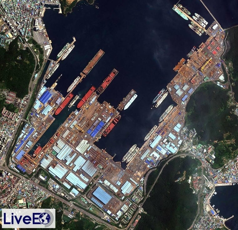 Der Bestellboom dürfte vor allem die Werften freuen. Ihre Fertigungsdocks über Jahre belegt, viele Werften geben gar keine Kostenvoranschläge für Neubauten mehr raus, heißt es aus der Branche. Vor allem die Werften in Asien profitieren: Südkorea, Japan und insbesondere China gelten als größte Schiffsbauer der Welt. Die exklusiven Satellitenbilder von LiveEO zeigen Einblicke in einige Werften dieser Länder.