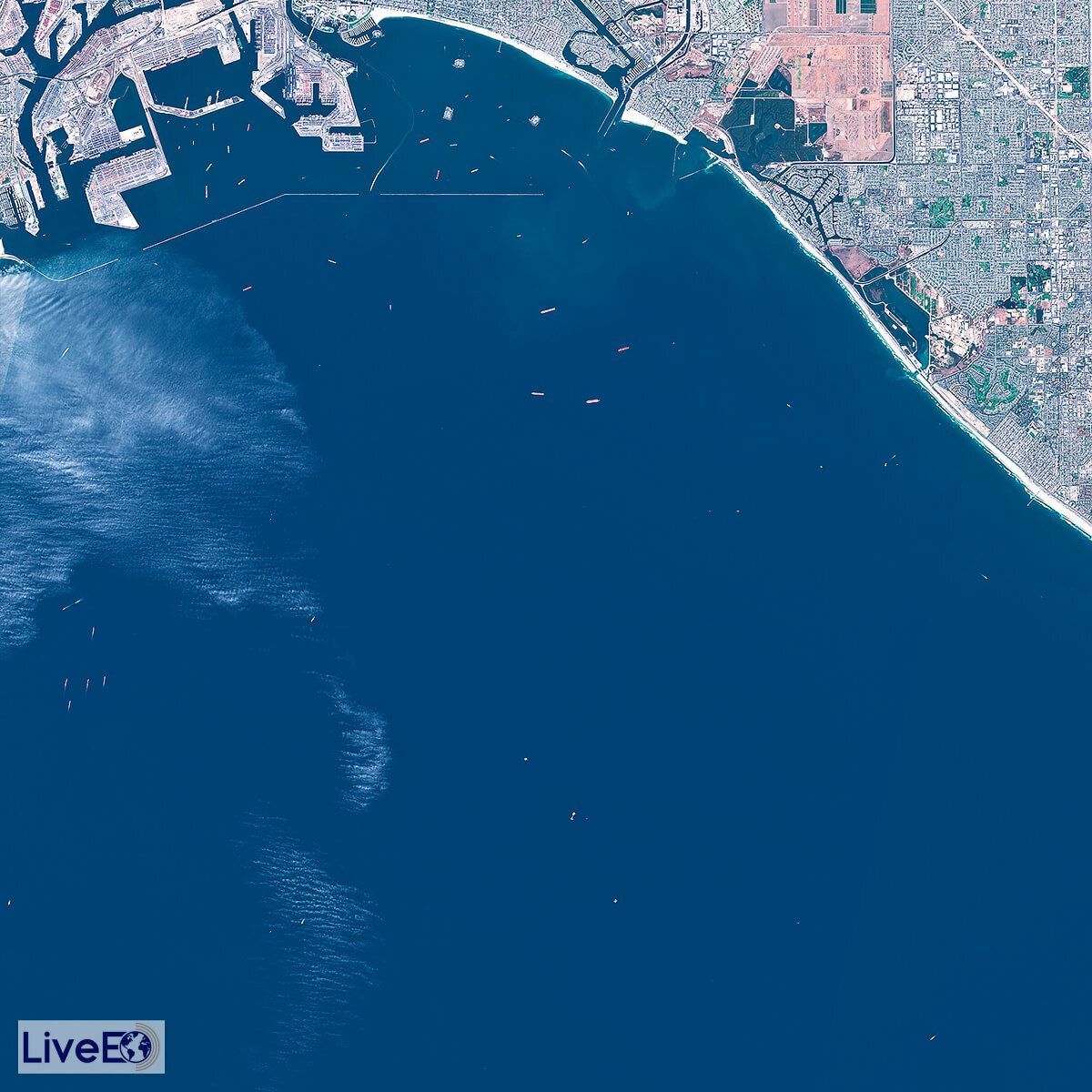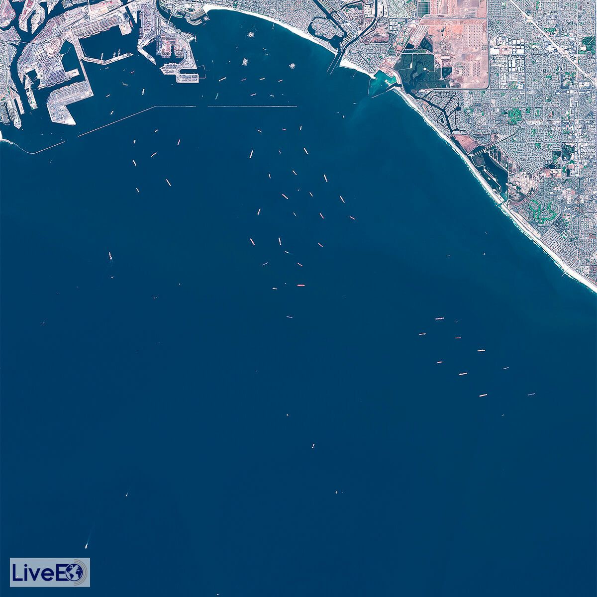 Doch ein Teil der Geschenke wird es wohl nicht rechtzeitig in die Ladenregale schaffen. Die Produkte hängen auf See fest. Allein vor Los Angeles und Long Beach stehen Schiffe mit Waren im Wert von 24 Milliarden Dollar im Stau, schätzt die Investmentbank Goldman Sachs. Einen Eindruck der Situation geben auch die exklusiven Satellitenbilder von LiveEO.