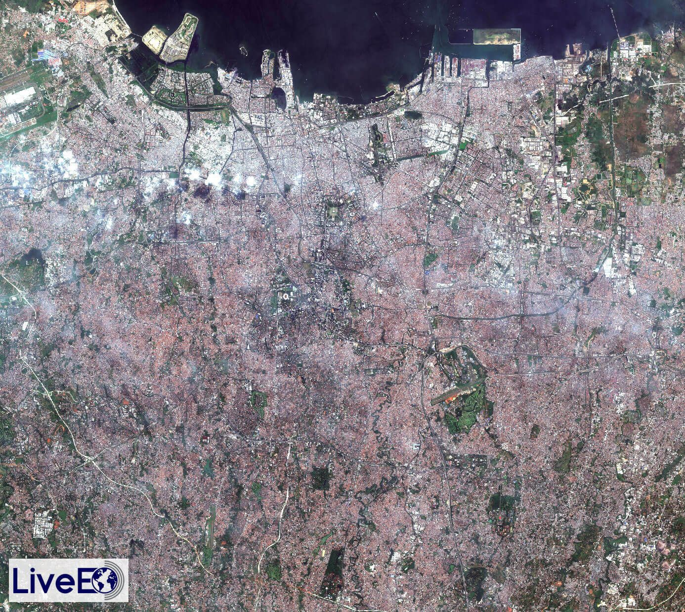Denn Jakarta ist zahlreich und dicht bewohnt, vollgestellt und kaum befahrbar. Nur im Großraum Tokio leben noch mehr Menschen. Die exklusiven Satellitenaufnahmen von LiveEO veranschaulichen die Ausbreitung der Stadt, in deren Großraum heute mehr als 30 Millionen Menschen leben.