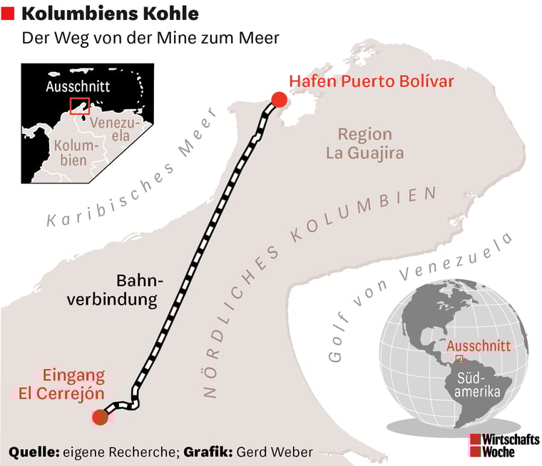 In La Guajira in Nordkolumbien, wo die Arbeiter den Rohstoff aus dem Berg holen, herrschen gerade tropische 31 Grad. Die Kohle ist für die Menschen der Gegend, in der viele Indigene leben, eine wichtige Einnahmequelle, zugleich aber auch ein Gesundheits- und Umweltproblem. Nichtregierungsorganisationen und Anwohner beklagen immer wieder Umsiedlungen und Vertreibungen.