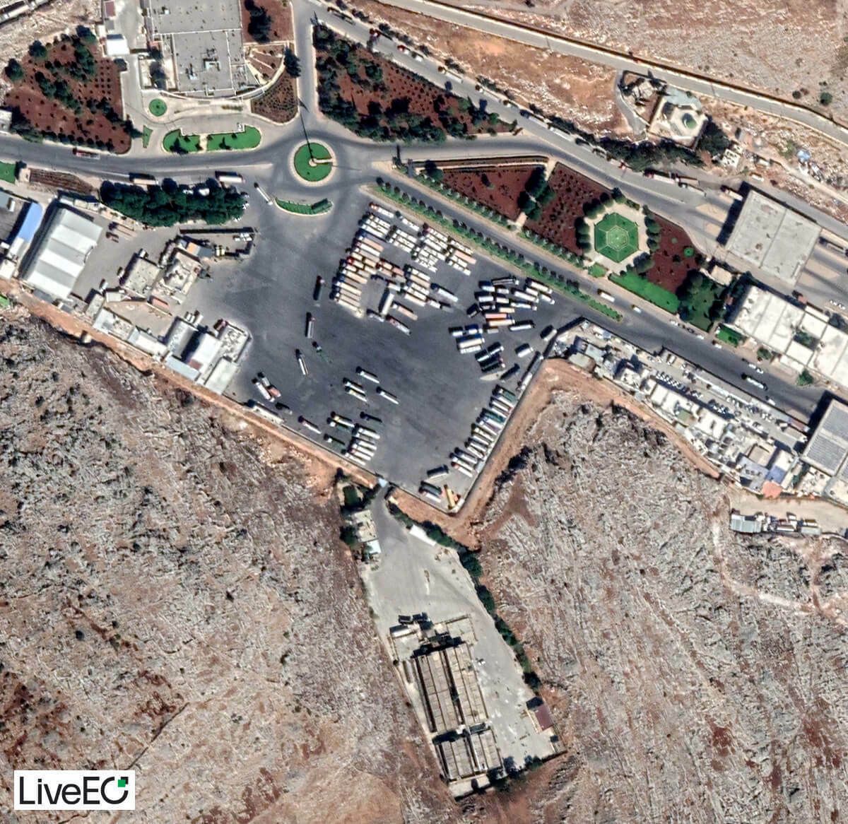 Hilfe, die Türken wie Syrer dringend benötigen. Nach Syrien dringen selbst viele der Güter nicht durch, die es bis zu einem Flughafen geschafft haben. Denn die wichtigste Route von der Türkei ins Nachbarland, die Straße zum Grenzübergang Bab Al-Hawa, musste wegen beschädigter Straßen geschlossen werden. Er war in den vergangenen Monaten die einzige Möglichkeit, die Grenze zwischen Syrien und der Türkei zu passieren. Die Station liegt auf halbem Weg zwischen der zweitgrößten syrischen Stadt Aleppo und Antakya im Südwesten der Türkei. Auf dem Satellitenbild vom 8. Februar ist zu erkennen, dass der Parkplatz, auf dem zuvor etliche Lkw stehen, leer ist.