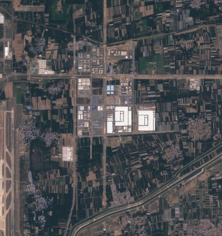 Auf dem neuesten Satellitenbild des BYD-Werks in Hefei vom 1. Mai sind nun neben den zwei weitgehend fertigen Bauabschnitten schon die Erdarbeiten für Phase drei zu sehen.