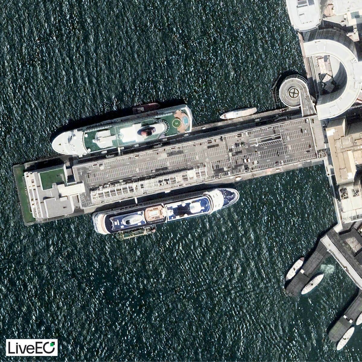 Doch dann traf die Pandemie die Neulinge am härtesten. Weil alle Länder der Region ihre Grenzen schlossen, konnte fast kein Kreuzfahrer mehr in die beiden Stadtstaaten. Der Verkehr ging fast auf null zurück. Ähnlich am Ocean Terminal ein paar Kilometer westlich vom Kai Tak: Während zur Zeit der ersten Aufnahme auf fast jedem niedriger aufgelösten Bild – von denen es hier pro Woche rund drei gibt – mindestens ein Schiff zu erkennen ist, sind auf den Aufnahmen rund um das aktuelle Datum Anfang Juni nur sehr selten Schiffe zu sehen.