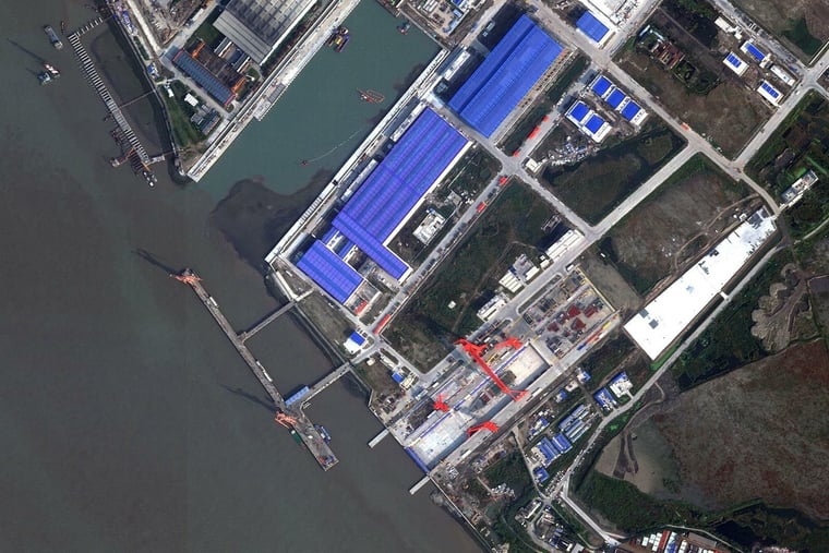 Um das riesige Schiff zu bauen, braucht die staatliche Hudong-Zhonghua-Werft offenbar einen neuen Standort – auf der Insel Changxing bei Shanghai. Bisher liegt sie am Huangpu-Fluss mitten im Stadtgebiet der Millionenmetropole. Die Werftanlagen dort scheinen aus allen Nähten zu platzen, da die Arbeiter hier neben den amphibischen Angriffsschiffen, wie die Hubschrauberträger genannt werden, auch noch kleinere Kriegsschiffe und LNG-Tanker bauen.