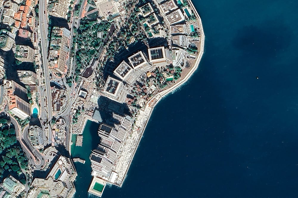 Doch in Monaco wird nicht nur nach unten und oben gebaut, sondern auch auf das Meer hinaus. Seit Jahrzehnten wird hier die Immobilienfläche durch Aufschüttungen im Ozean vergrößert. Mithilfe solcher Landerweiterungen konnte der Stadtstaat über die Jahre mehr als 40 Hektar Land hinzugewinnen, auf historischen Satellitenbildern lässt sich die Erweiterung der Küstenlinie deutlich erkennen.