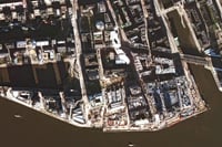Satellitenbilder zeigen das neu gestaltete Überseequartier – eine Mischung aus Stadtviertel und Shoppingmall. In wenigen Tagen sollte das Bauprojekt seine Eröffnung feiern. Doch ein Wasserschaden durchkreuzt die Pläne.
