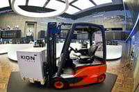 Die Kion Group AG ist ein börsennotierter Anbieter von Gabelstaplern, Lagertechnik und damit verwandten Dienstleistungen. Das 2006 gegründete Unternehmen mit Sitz in Wiesbaden beschäftigt etwa 30.000 Mitarbeiter.