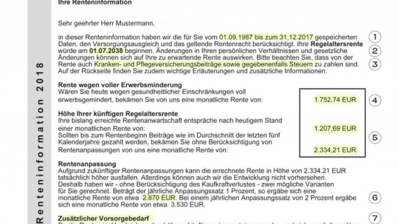 Zur Orientierung dient eine typische Muster-Renteninformation der Deutschen Rentenversicherung.